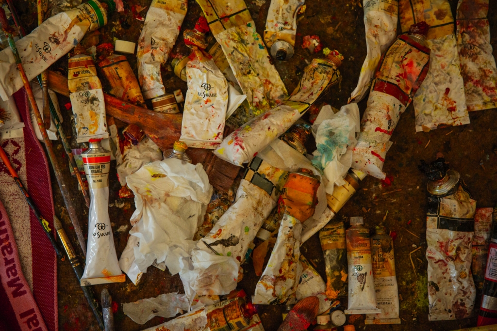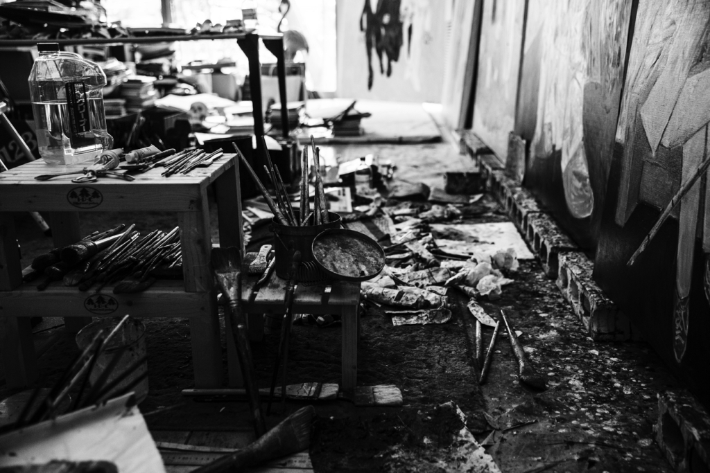 僕は絵を描くときアスリート的な気分で描いています。テーブルの上で手と頭を使って描くよりも、身体的に躯を動かしながら創作するタイプですから、どちらかというとアスリートに近いアーティストだと思います。芸術は観念でなく感覚で表現するものだからです。観念は嘘をつくけど、その点、肉体は正直だと思います。